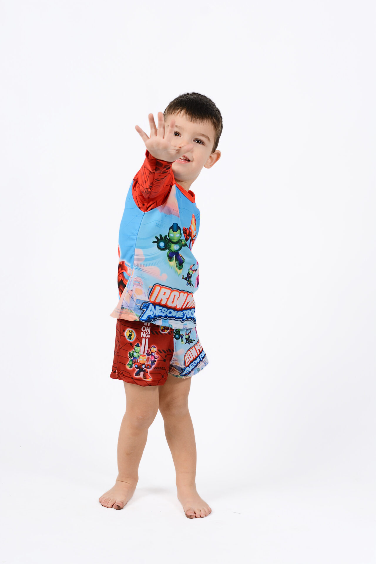 Remera infantil confeccionada en Tricot con tratamiento anticloro y filtro UV50+. Hilos a tono. Diseños propios y exclusivos de nuestra marca. Se entregan embolsadas y perfumadas.