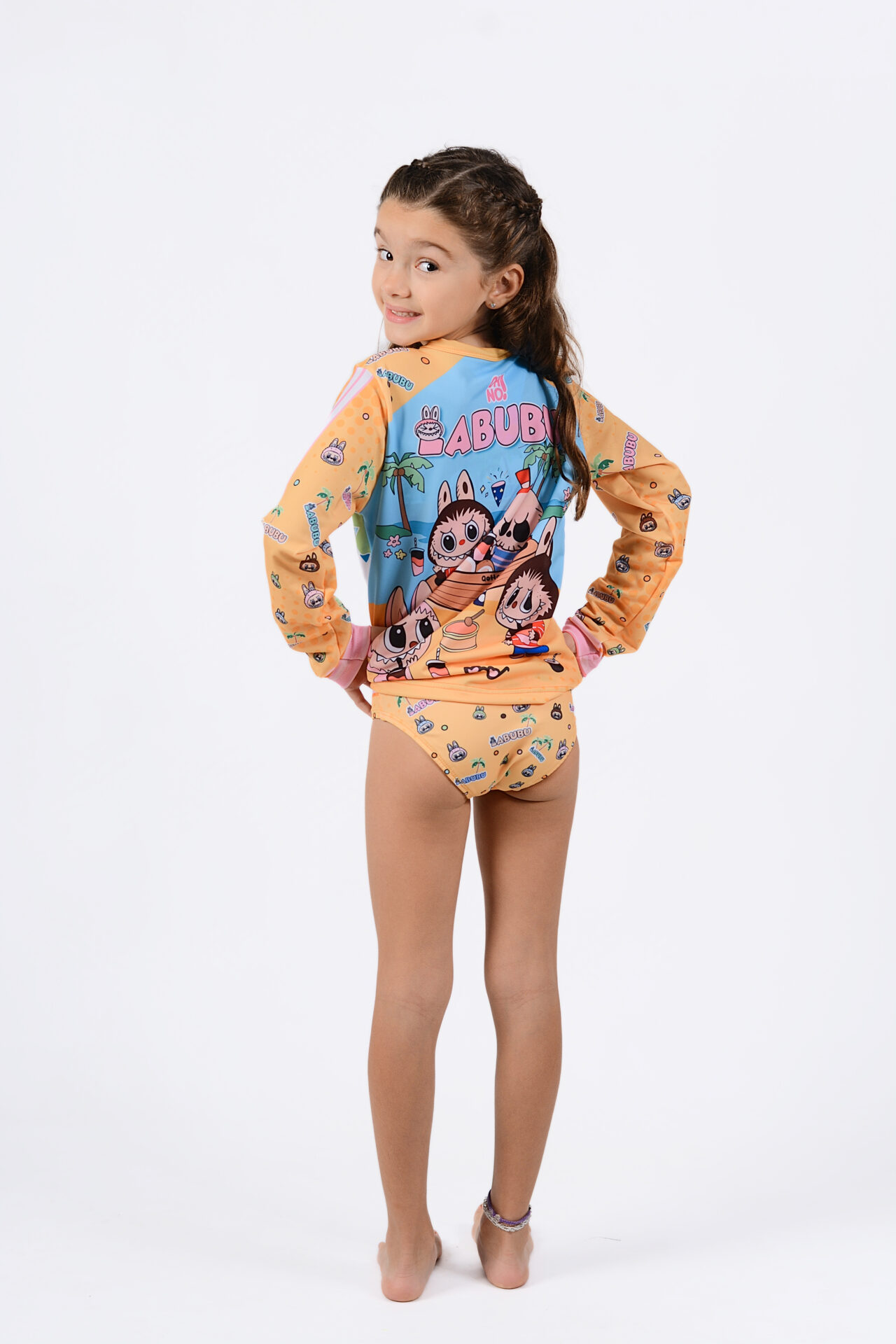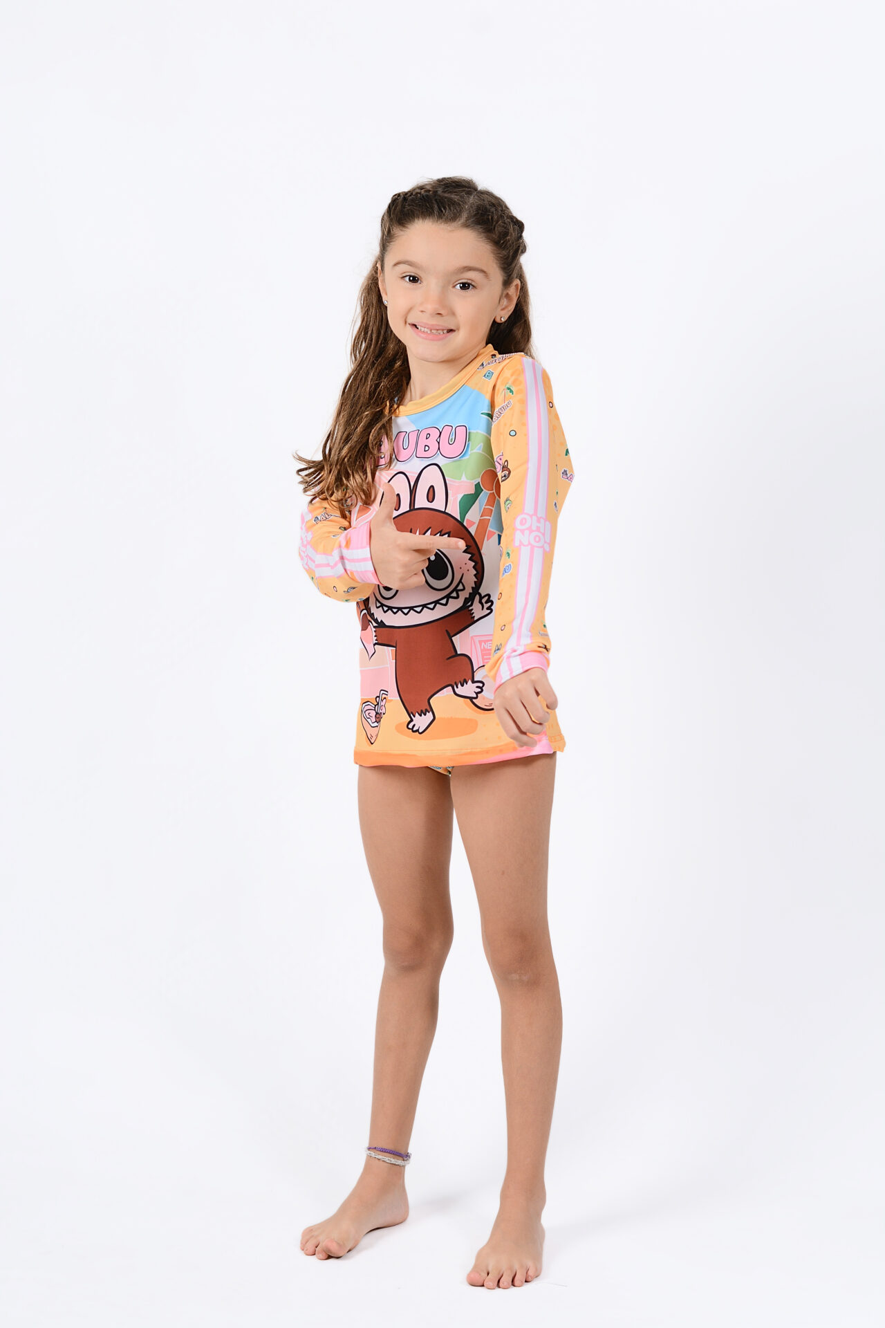 Remera infantil confeccionada en Tricot con tratamiento anticloro y filtro UV50+. Hilos a tono. Diseños propios y exclusivos de nuestra marca. Se entregan embolsadas y perfumadas.