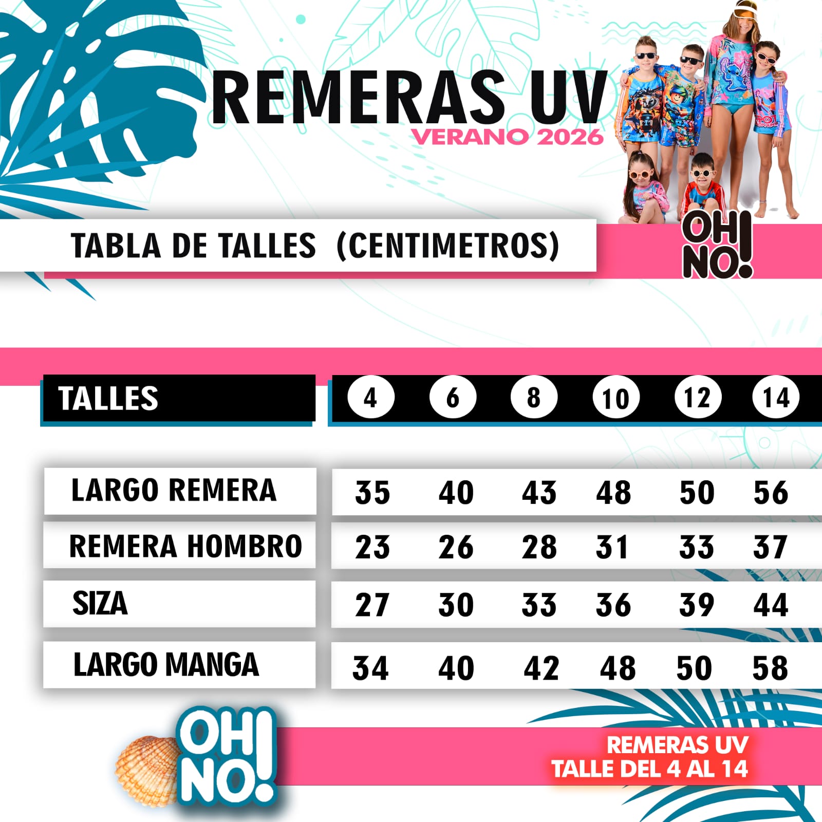 Remera infantil confeccionada en Tricot con tratamiento anticloro y filtro UV50+. Hilos a tono. Diseños propios y exclusivos de nuestra marca. Se entregan embolsadas y perfumadas.