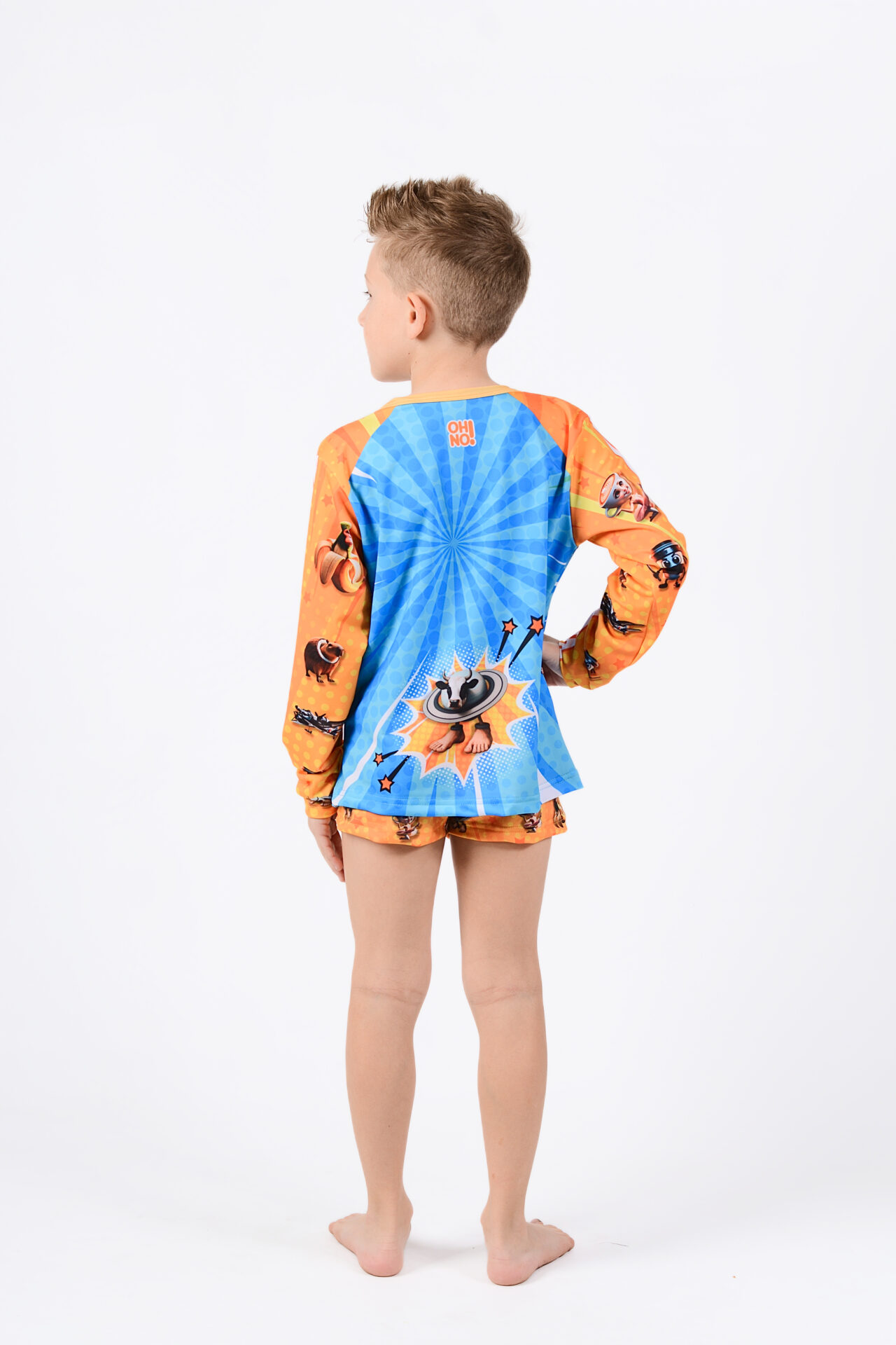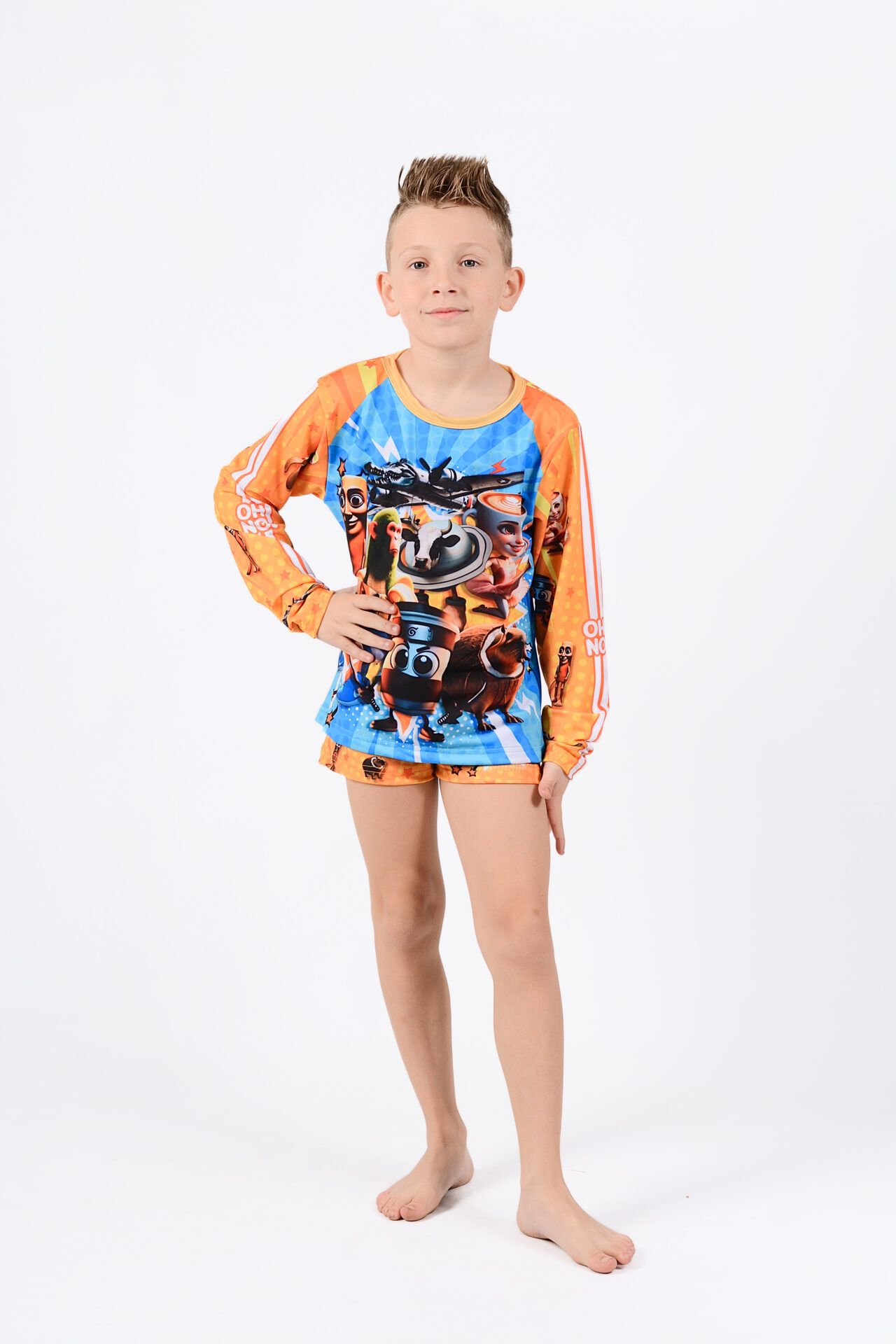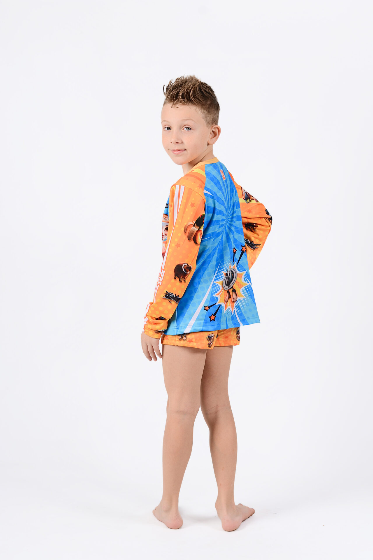 Remera infantil confeccionada en Tricot con tratamiento anticloro y filtro UV50+. Hilos a tono. Diseños propios y exclusivos de nuestra marca. Se entregan embolsadas y perfumadas.