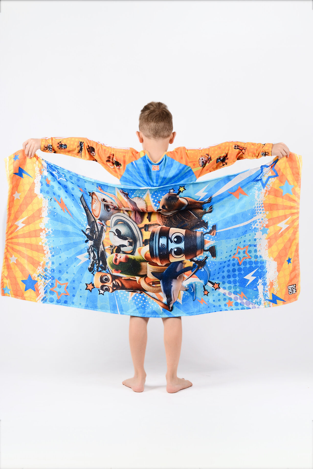 Toallón de toalla de microfibra sublimada. Medidas: 67 x 140 cm. Hilos a tono. Se entregan embolsados y perfumados. Diseños propios y exclusivos de la marca.